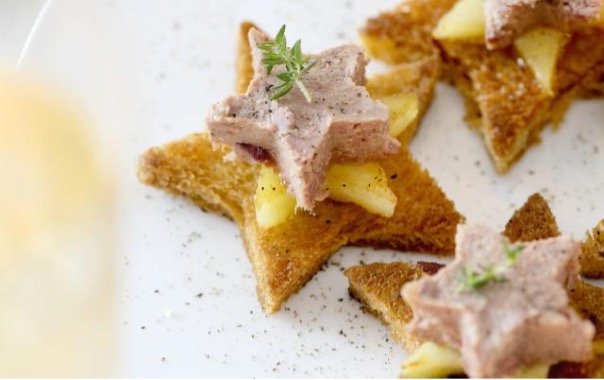 Leg op elke ster peperkoek een appelster en eindig met een ster paté. Werk af met een takje tijm.