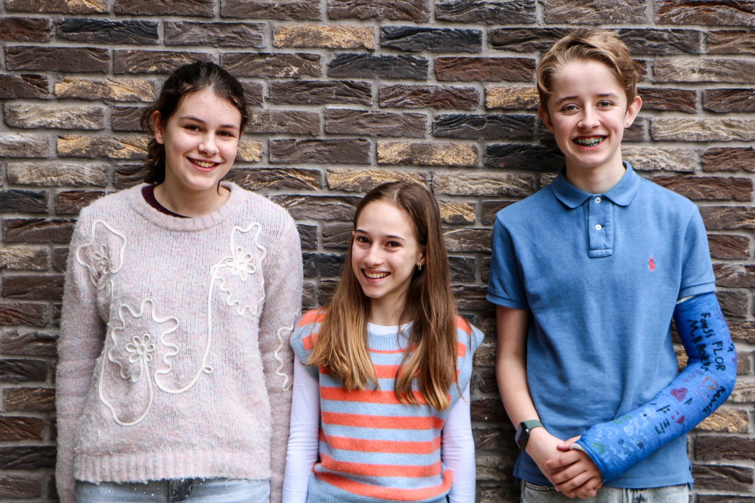 Leerlingen van de eerste graad. Van links naar rechts; Nora, Alexine en Max